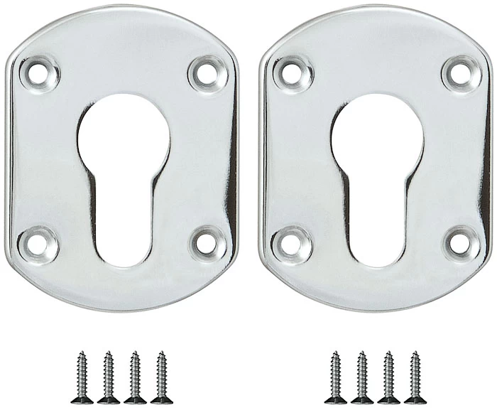 Комплект декоративных накладок Fuaro ESC031 под цилиндровый механизм. Комплект состоит из двух накладок. Накладки предназначены для установки на цилиндровый механизм для декорирования замочной скважины. Материал изготовления: сталь. Тип крепления накладок: сквозной. Цвет: хром. Саморезы в цвет накладок.