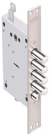 Замок врезной сувальдный Рубин 1.08.31 6ти сувальдный с тягами для бронированных и металлических дверей усиленной конструкции. 4 класс безопасности. Кодовый механизм обеспечивает более 3 млн секретов. Наличие распорных втулок в корпусе замка увеличивает его жесткость и исключает зажатие сувальдного механизма при установке замка в дверь. В корпусе замка есть отверстия под стяжные винты для крепления дверной ручки к корпуса замка. Также в корпусе замка предусмотрены отверстия для установки различных видов броненакладок.