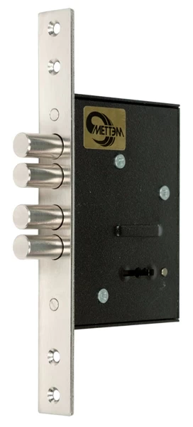 Замок врезной сувальдный ЗВ8 290.0.0 сертифицирован в соответствии со 2-м классом безопасности по ГОСТ. Подходит для установки во входные двери в качестве дополнительного запирающего устройства. Замок имеет одно направление запирания — четырьмя стальными ригелями диаметром 12 мм, которые выдвигаются из корпуса замка на 22 мм. Запирание происходит на 2 полуоборота. Модель ЗВ8 290.0.0 не имеет защелки, поэтому рекомендуется к использованию в качестве дополнительного запирающего устройства. Замок комплектуется стальной лицевой планкой, а также пятью латунными ключами с пластиковой головкой и двумя декоративными накладками из нержавеющей стали.
