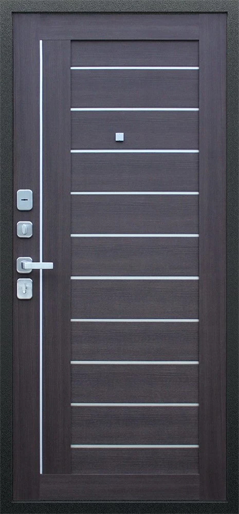 Надежная входная Дверь Соло орех рифленый премиум класса по цене 35 495 руб. Большая толщина стали защитит от проникновения в ваш дом, квартиру или коттедж. Используется очень качественная фурнитура: замки, цилиндры, ручки, защелки. Покрытие и отделка двери изготовлено под внимательным контролем производителя. Дверь имеет долгий срок службы и гарантию.