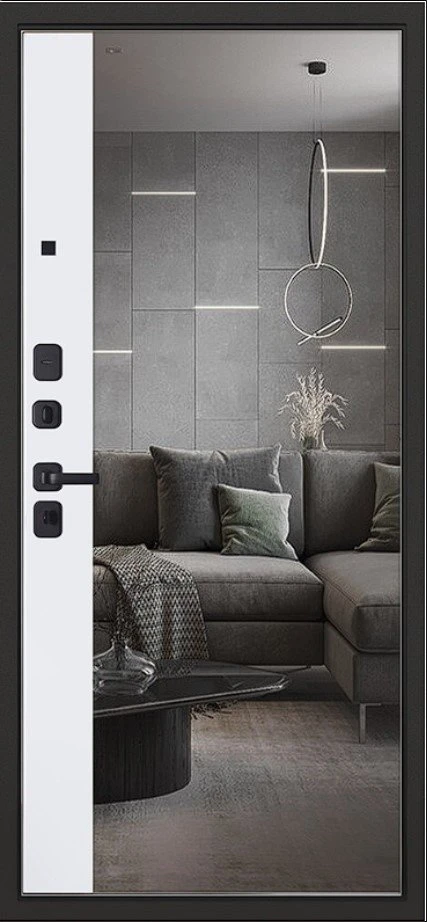 Надежная входная Дверь Scandi с зеркалом премиум класса по цене 45 095 руб. Большая толщина стали защитит от проникновения в ваш дом, квартиру или коттедж. Используется очень качественная фурнитура: замки, цилиндры, ручки, защелки. Покрытие и отделка двери изготовлено под внимательным контролем производителя. Дверь имеет долгий срок службы и гарантию.