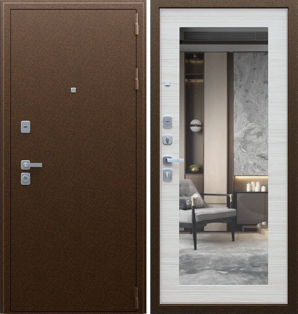 Надежная входная Дверь Спартак с зеркалом Акация Светлая Поперечная премиум класса по цене 36 295 руб. Большая толщина стали защитит от проникновения в ваш дом, квартиру или коттедж. Используется очень качественная фурнитура: замки, цилиндры, ручки, защелки. Покрытие и отделка двери изготовлено под внимательным контролем производителя. Дверь имеет долгий срок службы и гарантию.