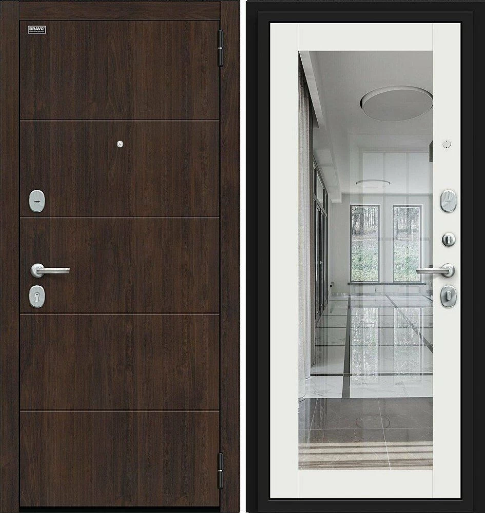 Надежная входная Дверь Браво Флэт Kale Almon/Off-white премиум класса по цене 41 595 руб. Большая толщина стали защитит от проникновения в ваш дом, квартиру или коттедж. Используется очень качественная фурнитура: замки, цилиндры, ручки, защелки. Покрытие и отделка двери изготовлено под внимательным контролем производителя. Дверь имеет долгий срок службы и гарантию.