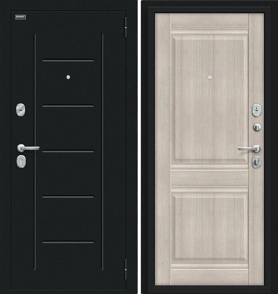 Надежная входная Дверь Браво Некст Kale Букле черное/Cappuccino Veralinga премиум класса по цене 35 465 руб. Большая толщина стали защитит от проникновения в ваш дом, квартиру или коттедж. Используется очень качественная фурнитура: замки, цилиндры, ручки, защелки. Покрытие и отделка двери изготовлено под внимательным контролем производителя. Дверь имеет долгий срок службы и гарантию.