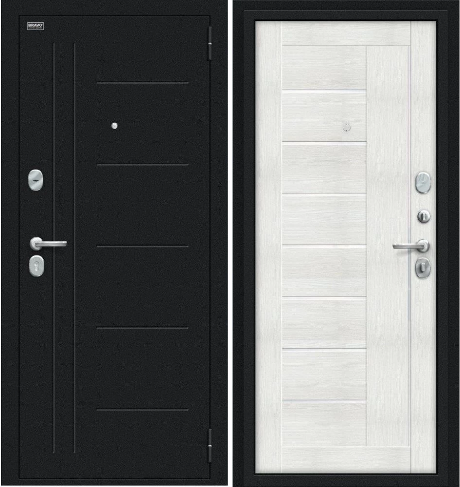 Надежная входная Дверь Браво Проф Букле черное/Bianco Veralinga премиум класса по цене 32 745 руб. Большая толщина стали защитит от проникновения в ваш дом, квартиру или коттедж. Используется очень качественная фурнитура: замки, цилиндры, ручки, защелки. Покрытие и отделка двери изготовлено под внимательным контролем производителя. Дверь имеет долгий срок службы и гарантию.