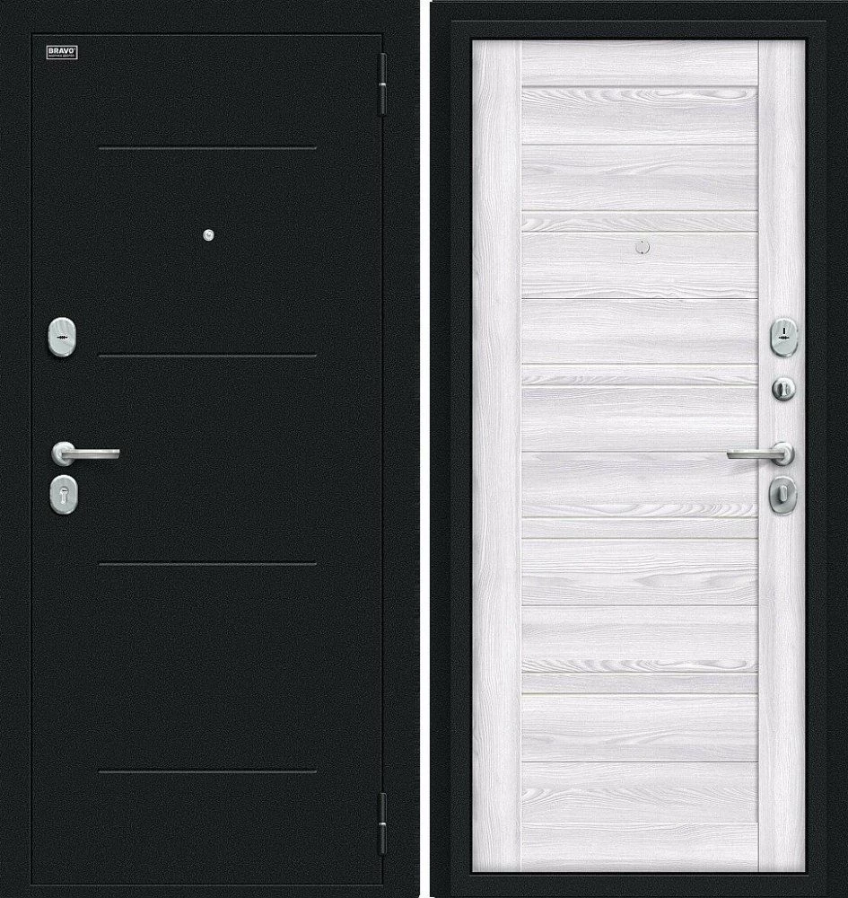 Надежная входная Дверь Браво Сити Kale Букле черное/Riviera Ice премиум класса по цене 35 295 руб. Большая толщина стали защитит от проникновения в ваш дом, квартиру или коттедж. Используется очень качественная фурнитура: замки, цилиндры, ручки, защелки. Покрытие и отделка двери изготовлено под внимательным контролем производителя. Дверь имеет долгий срок службы и гарантию.