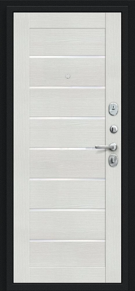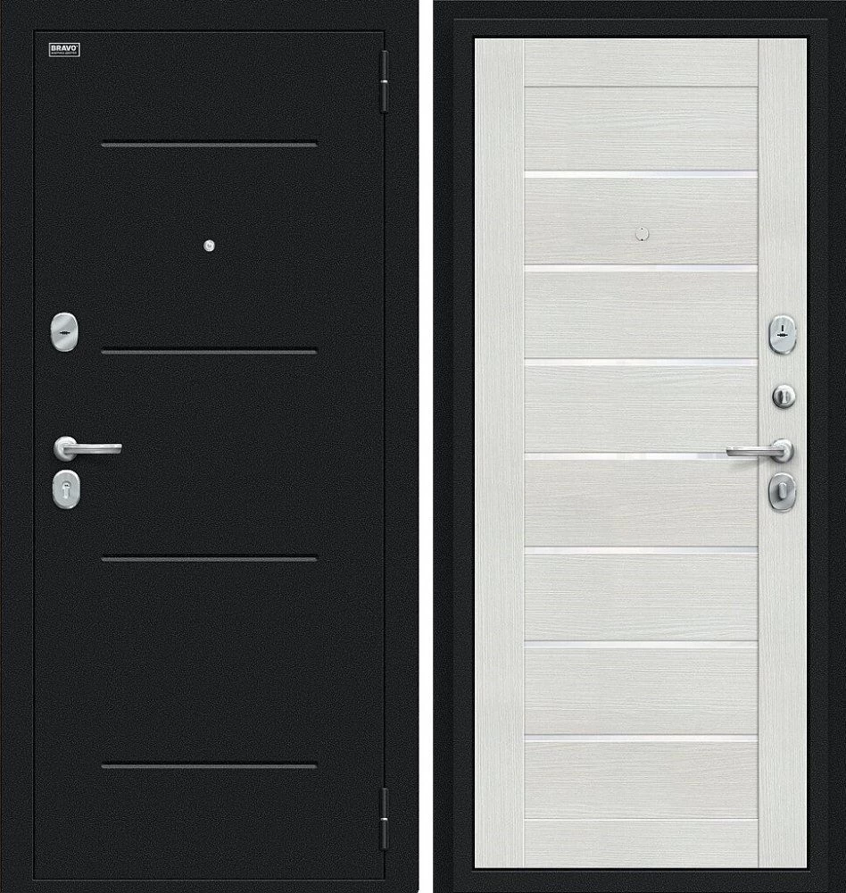 Надежная входная Дверь Браво Техно Букле черное/Bianco Veralinga премиум класса по цене 31 145 руб. Большая толщина стали защитит от проникновения в ваш дом, квартиру или коттедж. Используется очень качественная фурнитура: замки, цилиндры, ручки, защелки. Покрытие и отделка двери изготовлено под внимательным контролем производителя. Дверь имеет долгий срок службы и гарантию.