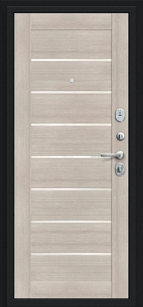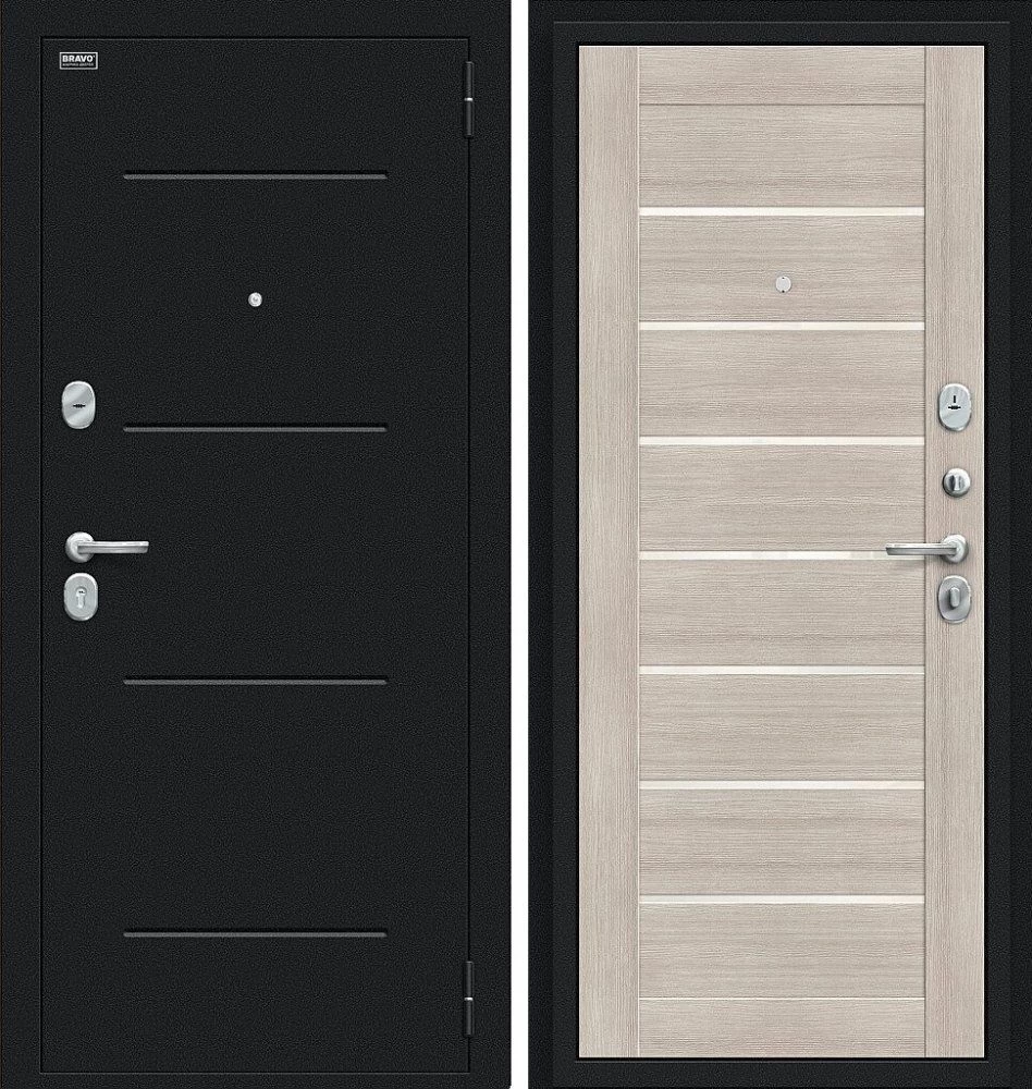 Надежная входная Дверь Браво Техно Букле черное/Cappuccino Veralinga премиум класса по цене 31 145 руб. Большая толщина стали защитит от проникновения в ваш дом, квартиру или коттедж. Используется очень качественная фурнитура: замки, цилиндры, ручки, защелки. Покрытие и отделка двери изготовлено под внимательным контролем производителя. Дверь имеет долгий срок службы и гарантию.