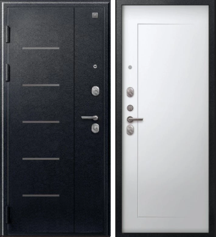 Надежная входная Дверь V-03 Черный муар - Кашемир белый премиум класса по цене 39 355 руб. Большая толщина стали защитит от проникновения в ваш дом, квартиру или коттедж. Используется очень качественная фурнитура: замки, цилиндры, ручки, защелки. Покрытие и отделка двери изготовлено под внимательным контролем производителя. Дверь имеет долгий срок службы и гарантию.