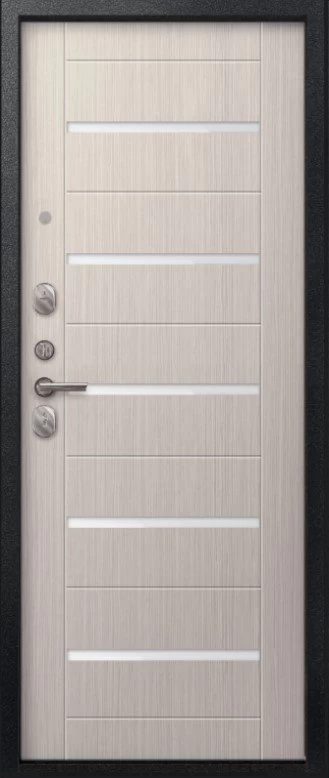 Надежная входная Дверь V-05 Черный муар - Лиственница светлая премиум класса по цене 41 795 руб. Большая толщина стали защитит от проникновения в ваш дом, квартиру или коттедж. Используется очень качественная фурнитура: замки, цилиндры, ручки, защелки. Покрытие и отделка двери изготовлено под внимательным контролем производителя. Дверь имеет долгий срок службы и гарантию.