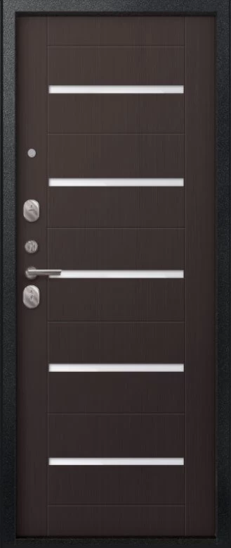 Надежная входная Дверь V-05 Черный муар - Темная лиственница премиум класса по цене 41 645 руб. Большая толщина стали защитит от проникновения в ваш дом, квартиру или коттедж. Используется очень качественная фурнитура: замки, цилиндры, ручки, защелки. Покрытие и отделка двери изготовлено под внимательным контролем производителя. Дверь имеет долгий срок службы и гарантию.