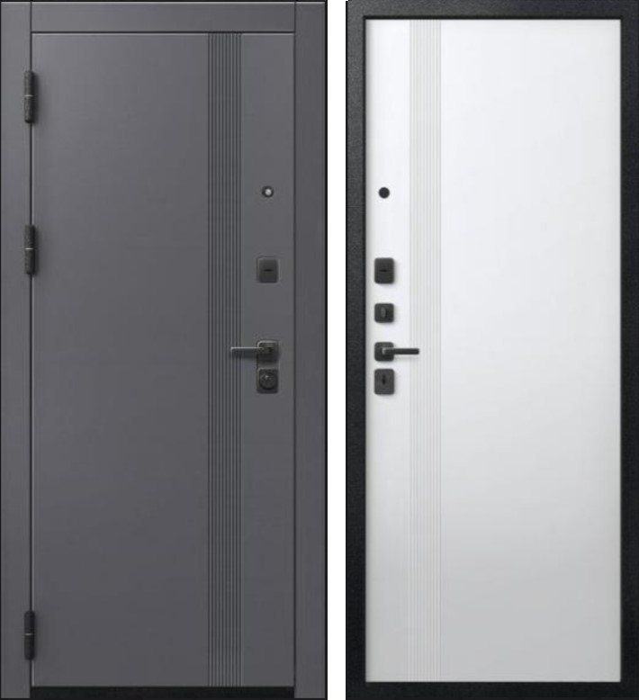 Надежная входная Дверь V-17 Черный муар + Кашемир графит - Кашемир белый премиум класса по цене 46 545 руб. Большая толщина стали защитит от проникновения в ваш дом, квартиру или коттедж. Используется очень качественная фурнитура: замки, цилиндры, ручки, защелки. Покрытие и отделка двери изготовлено под внимательным контролем производителя. Дверь имеет долгий срок службы и гарантию.